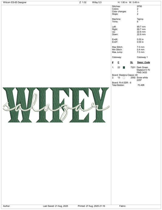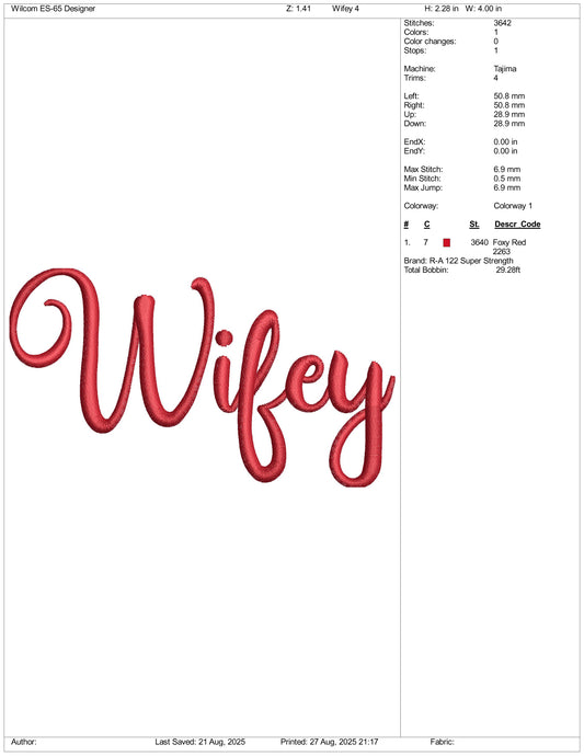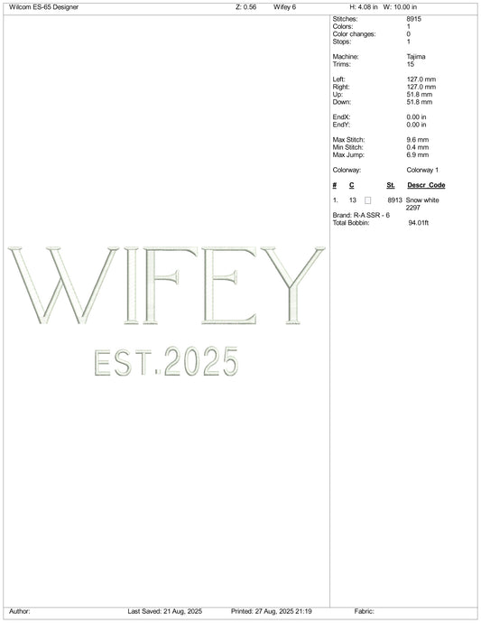Wifey Est 2025 Embroidery Design Files - 3 Size's