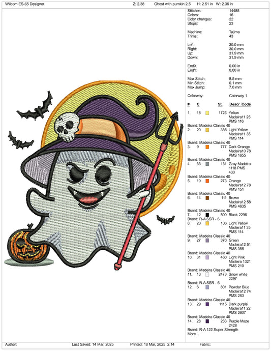 Archivos de bordado de bruja fantasma - 3 tamaños
