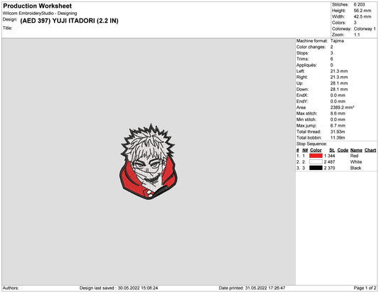 Yuji Itadori v2 Embroidery Design Files - 6 Size's