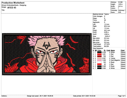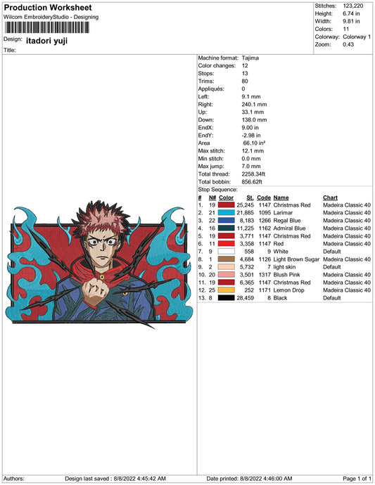 Yuji Itadori v4 Embroidery Design Files - 6 Size's