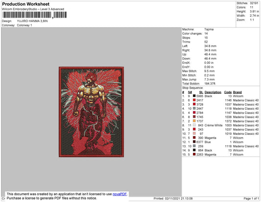 Yujiro Hanma Embroidery Design Files - 4 Size's
