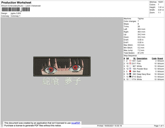 Yumeko Jabami Embroidery Design Files - 4 Size's