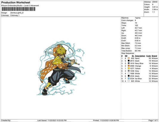 Zenitsu Agatsuma v5 Embroidery Design Files - 4 Size's