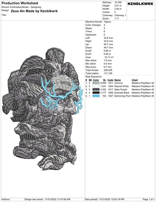 Zeus Embroidery Design Files - 2 Sizes