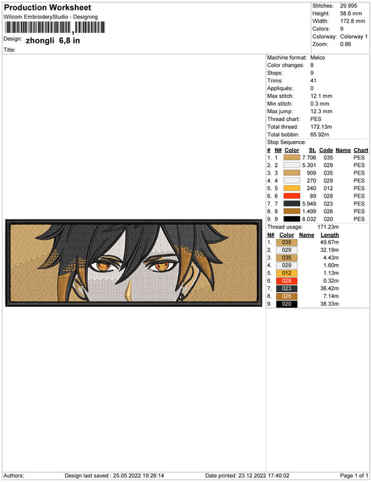 Zhongli Embroidery Design Files - 1 Size