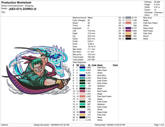 Roronoa Zoro v17 Embroidery Design Files - 4 Size's