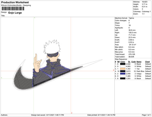 Satoru Gojo Swoosh v6 Embroidery Design Files - 3 Size's