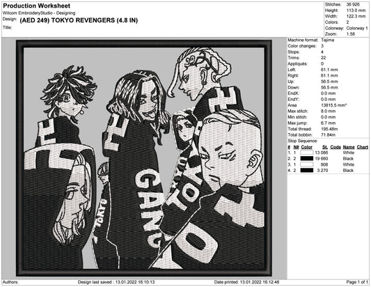 Tokyo Revengers Embroidery Design Files - 4 Size's