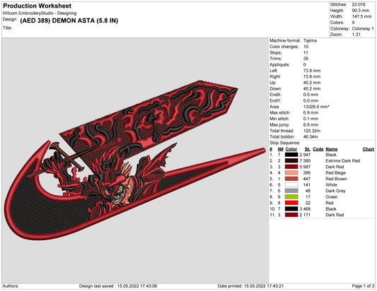 Demon Asta Swoosh Embroidery Design Files - 4 Size's
