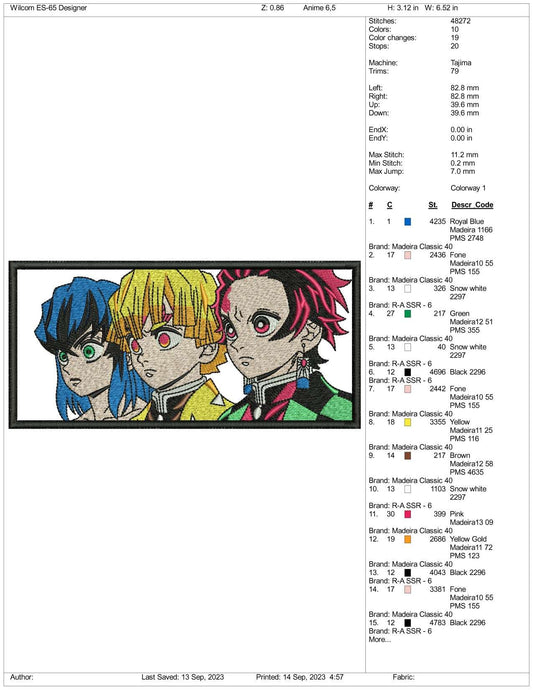 Archivos de diseño de bordado de Demon Slayer: 3 tamaños