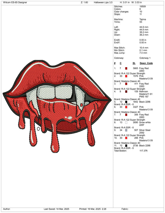 Archivos de bordado de labios de Drácula - 3 tamaños