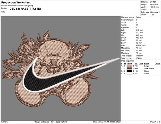 Bear Swoosh Embroidery Design Files - 5 Size's