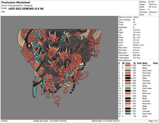Anime Demons Embroidery Design Files - 7 Size's