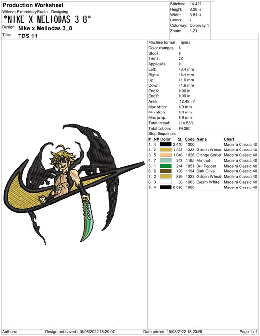 Meliodas Swoosh Embroidery Design Files - 4 Size's