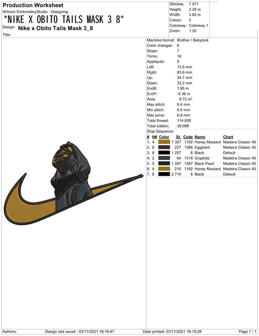 Uchiha Obito Swoosh v7 Embroidery Design Files - 5 Size's