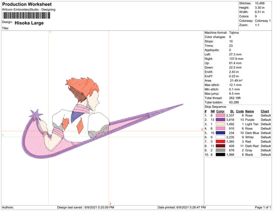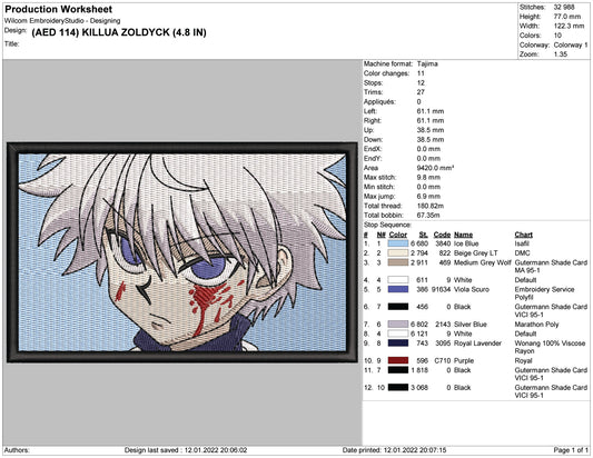 Killua Zoldyck v2 Embroidery Design Files - 4 Size's