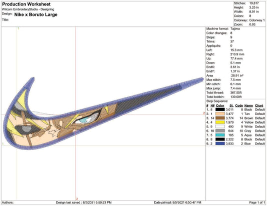 Boruto Swoosh Embroidery Design Files - 3 Size's