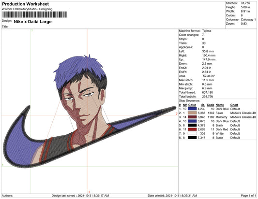 Daiki Aomine Swoosh Embroidery Design Files - 3 Size's