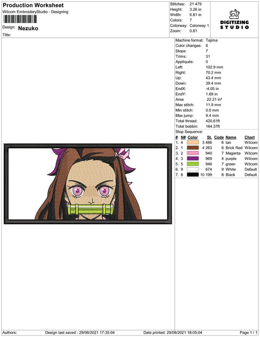 Nezuko Kamado v5 Embroidery Design Files - 4 Sizes