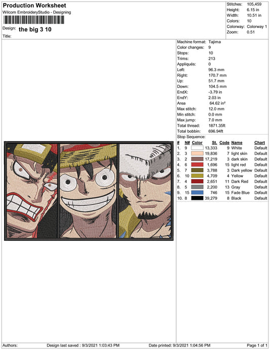 ASL Ace Sabo and Luffy Embroidery Design Files - 1 Size