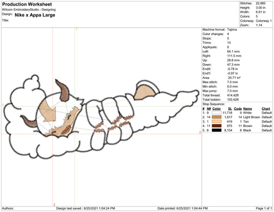 Avatar Appa Swoosh Embroidery Design Files - 3 Size's
