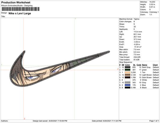Levi Ackerman Swoosh v2 Embroidery Design Files - 3 Sizes