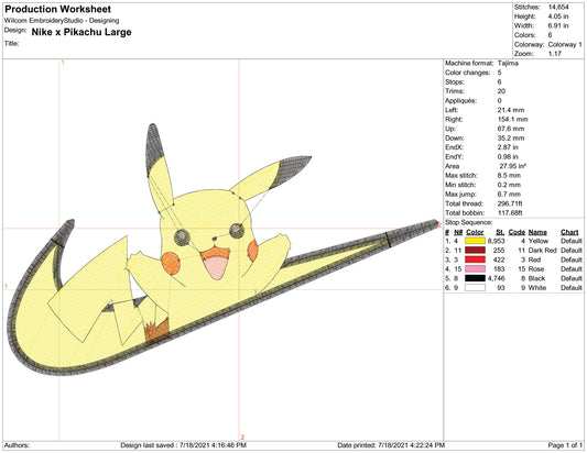 Pikachu Swoosh v3 Embroidery Files - 3 Size's