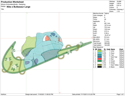 Bulbasaur Swoosh v2 Embroidery Files - 3 Size's