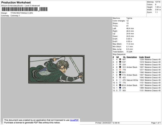 Levi Ackerman v4 Embroidery Design Files - 4 Size's