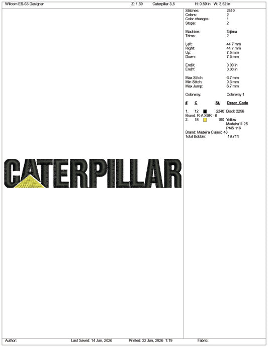 Caterpillar Logo v2 Embroidery Design Files - 4 Size's