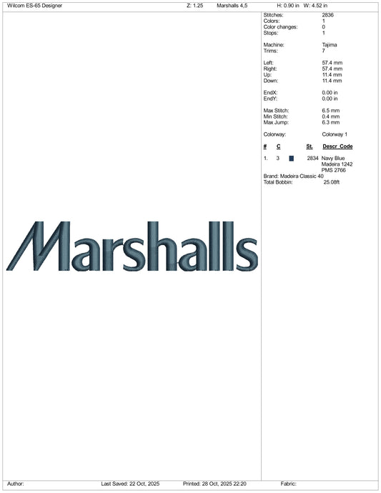 Marshalls Logo Embroidery Design Files - 4 Size's