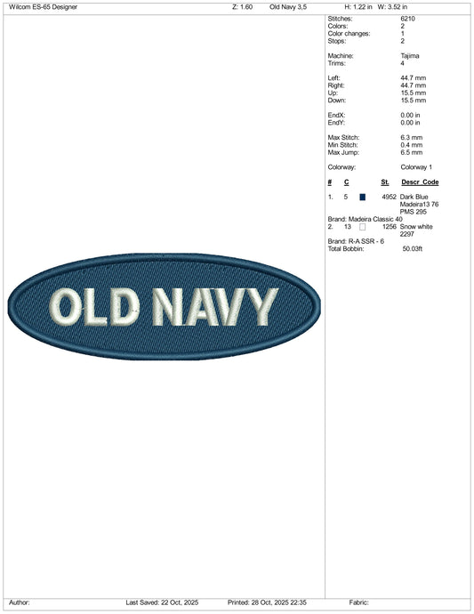 Old Navy Logo Embroidery Design Files - 4 Size's