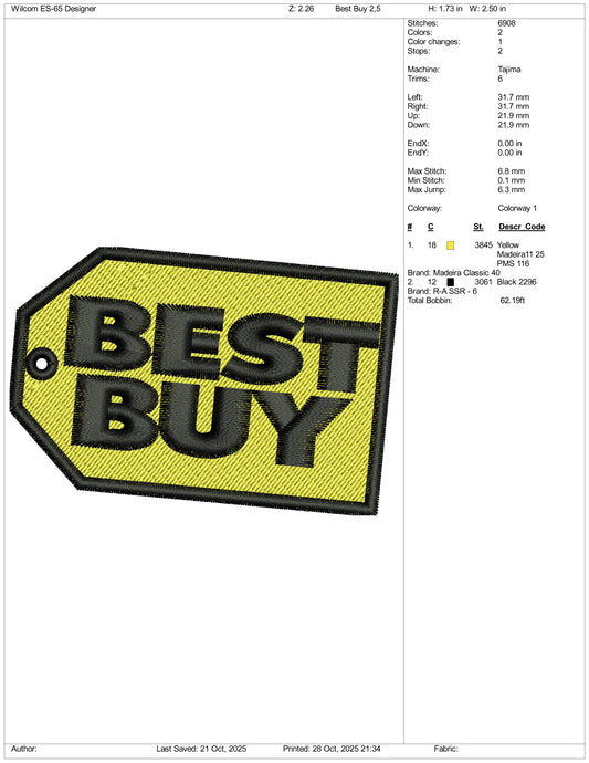 Best Buy Logo Embroidery Design Files - 3 Size's