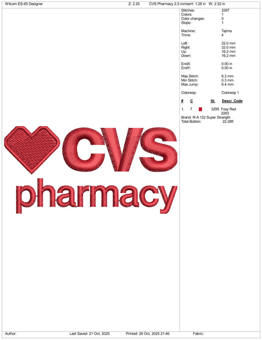CVS Pharmacy Logo Embroidery Design Files - 3 Size's