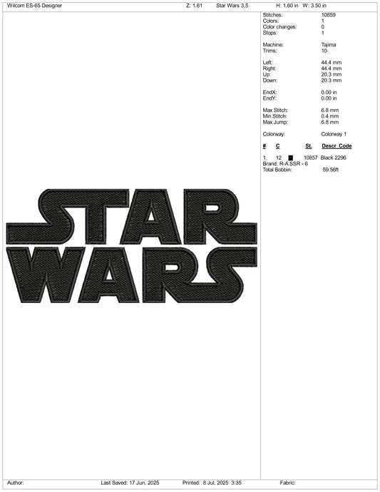 Star Wars Logo Embroidery Design Files - 3 Size's