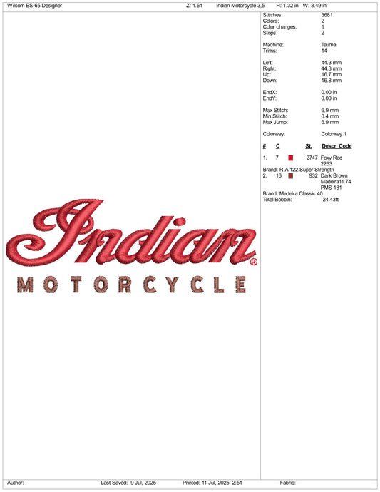 Indian Motorcycle Logo Embroidery Design Files - 3 Size's