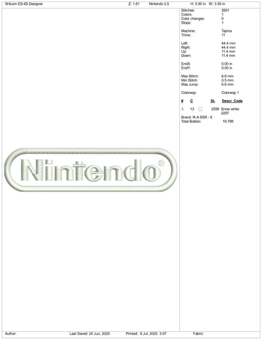 Nintendo Logo Embroidery Design Files - 3 Size's