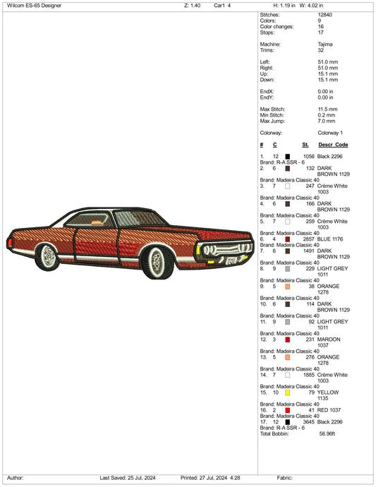 Archivos de diseño de bordado de Dodge Monaco - 3 tamaños