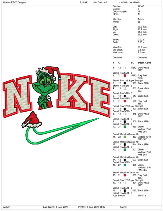 Archivos de diseño de bordado del Grinch navideño de Nike (3 tamaños)