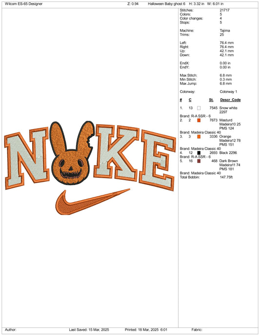Archivos de bordado Nike de conejo de galletas de Halloween (3 tamaños)
