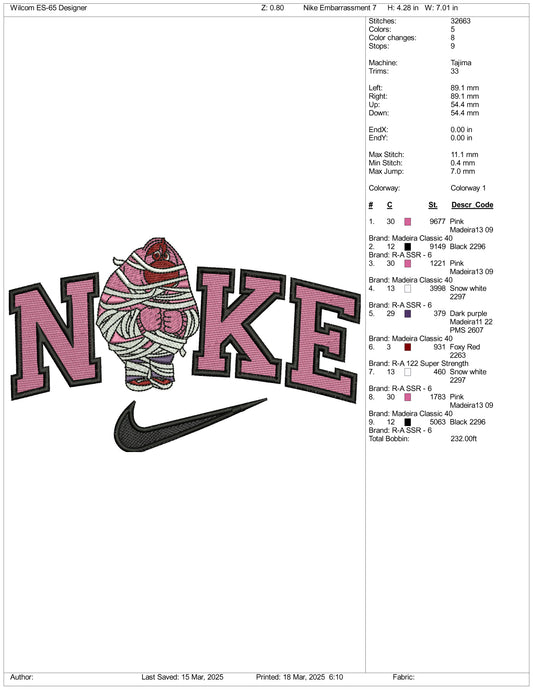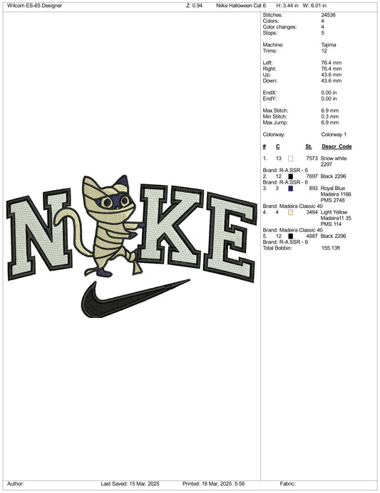 Archivos de bordado Nike Mummy Kitty - 3 tamaños