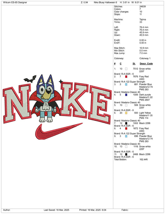 Archivos de bordado Nike Bluey Halloween (3 tamaños)