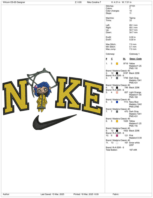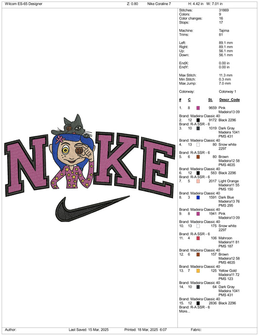 Archivos de bordado Nike Coraline v2 - 3 tallas