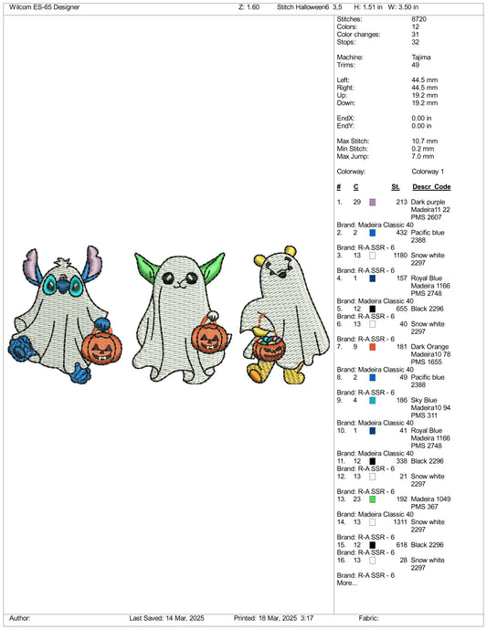 Archivos de bordado de Stitch Yoda y Pooh Ghost - 3 tamaños