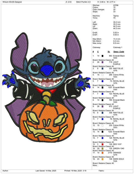 Archivos de bordado Stitch In The Pumpkin v2 - 3 tamaños