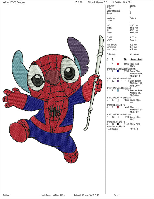 Archivos de bordado de Spider-Man para cosplay de Stitch (3 tamaños)
