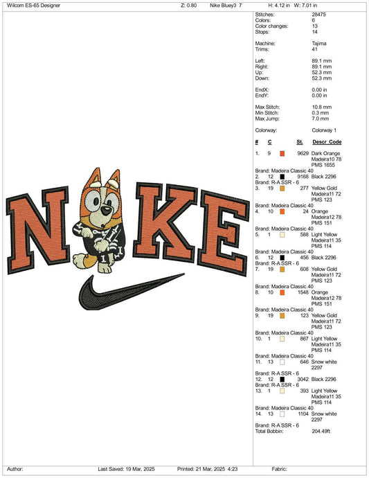 Archivos de diseño de bordado Nike Bluey v2 (3 tamaños)