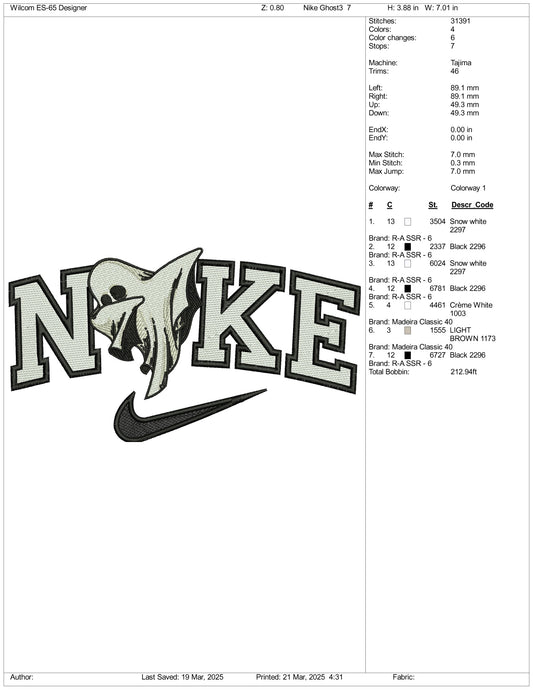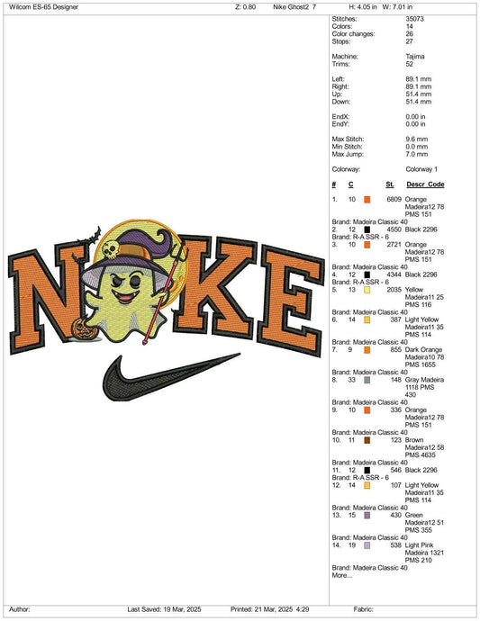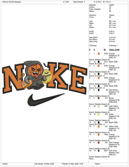 Archivos de bordado Nike Witch Ghost (3 tamaños)