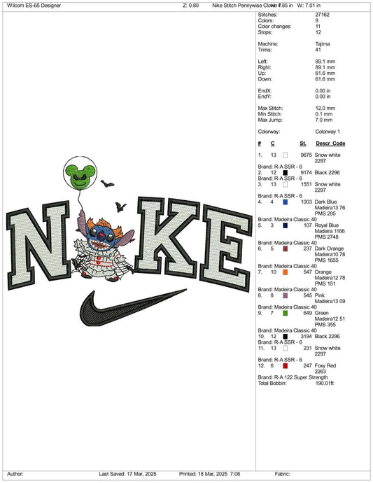 Archivos de bordado de Nike Stitch para cosplay de payaso Pennywise (3 tamaños)