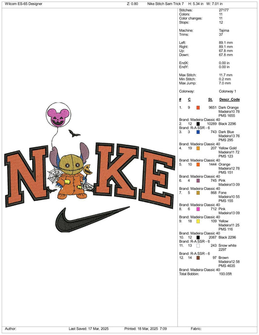 Archivos de bordado de Nike Stitch para cosplay de Sam Trick (3 tamaños)